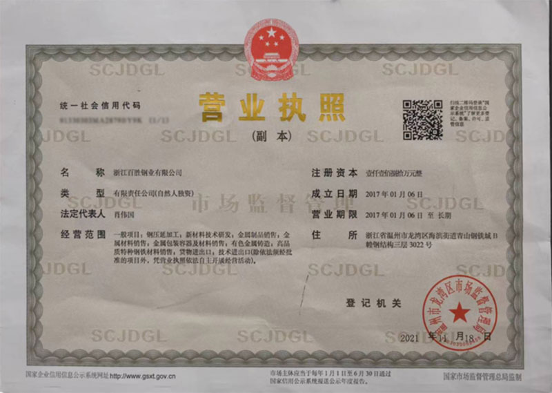 浙江百勝鋼業(yè)有限公司坐落于風(fēng)景秀麗的溫州市。是一家集生產(chǎn)不銹鋼焊管、不銹鋼無(wú)縫管、不銹鋼金屬軟管、不銹鋼波紋管補(bǔ)償器的生產(chǎn)廠家。